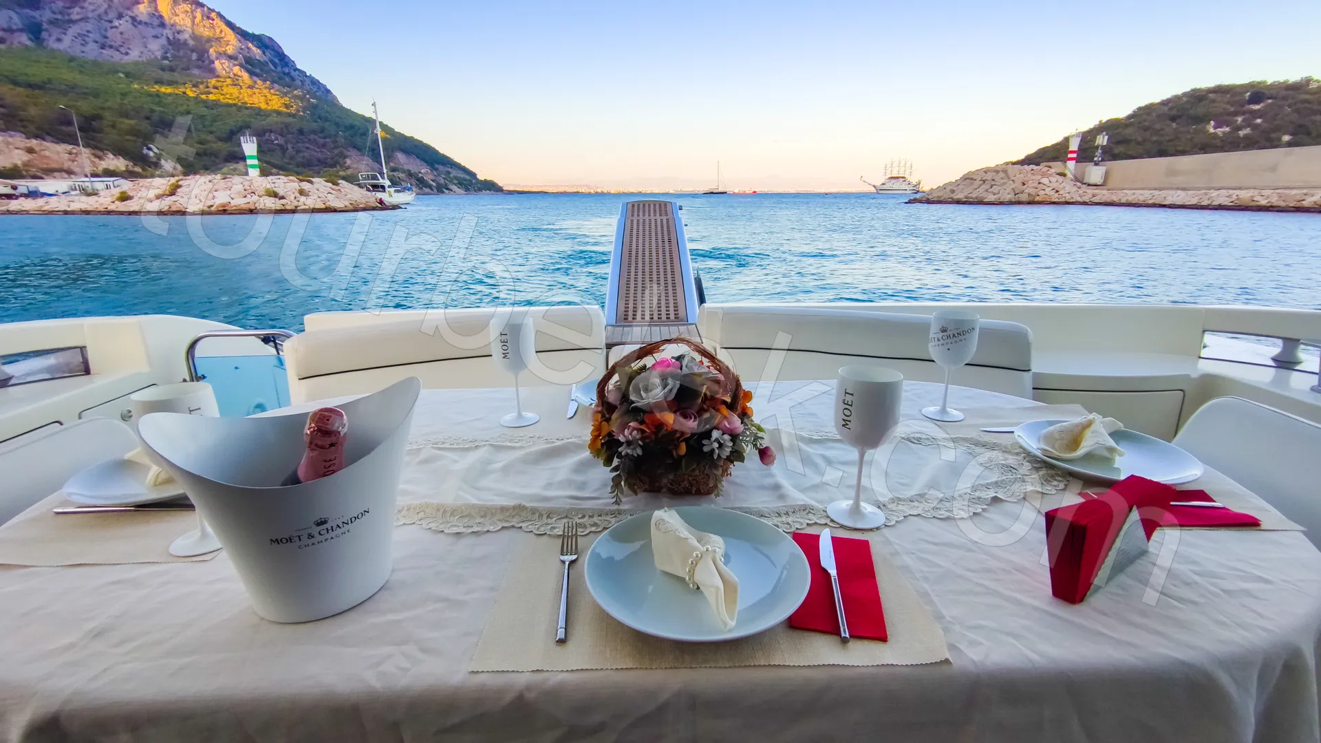 Departing from Antalya Marina, this sunset route brings together the Mediterranean’s calm bays for a relaxing evening on the sea. Your first cool-down stop is Rat Island, where a short swim break sets the tone for the cruise.