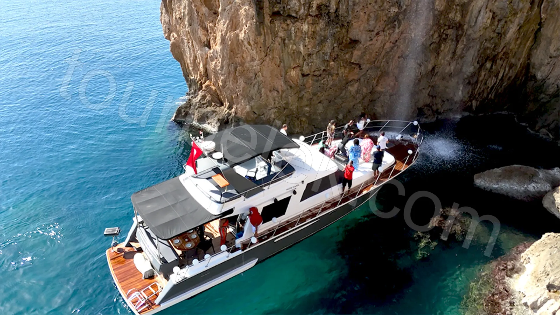 Departing from Belek, this full-day yacht cruise takes the Düden Waterfall line far beyond a “standard route”—with more time, richer stops, and more enjoyable breaks. After leaving Kundu and Altınkum beaches behind, you head toward the Fener, Kaplan, and Kuş Caves, with short, refreshing pauses around the Wish Stone and the Small Waterfall. The day’s peak moment begins as the yacht approaches the point where Düden meets the sea: moving closer beneath the falling water, you feel the cool mist on your face and experience the privilege of watching this scene from the sea.