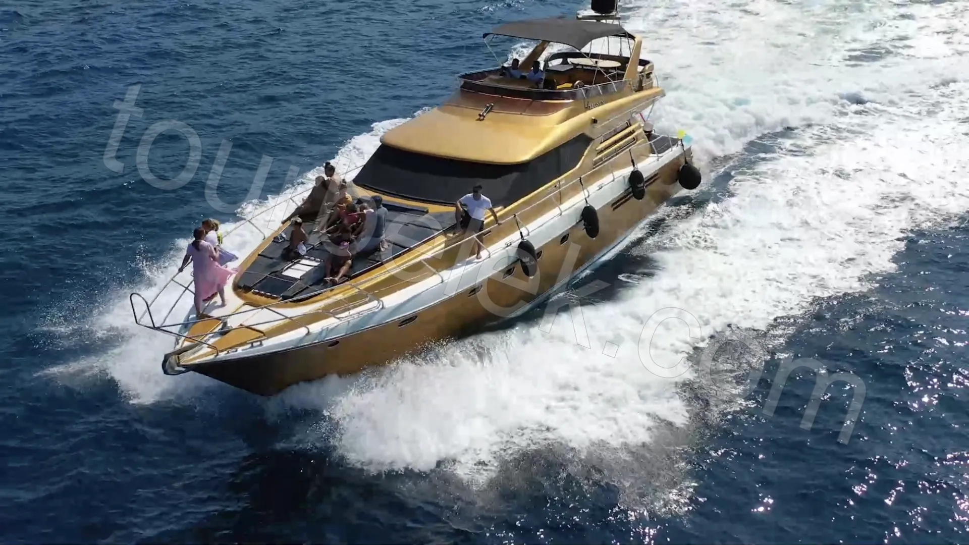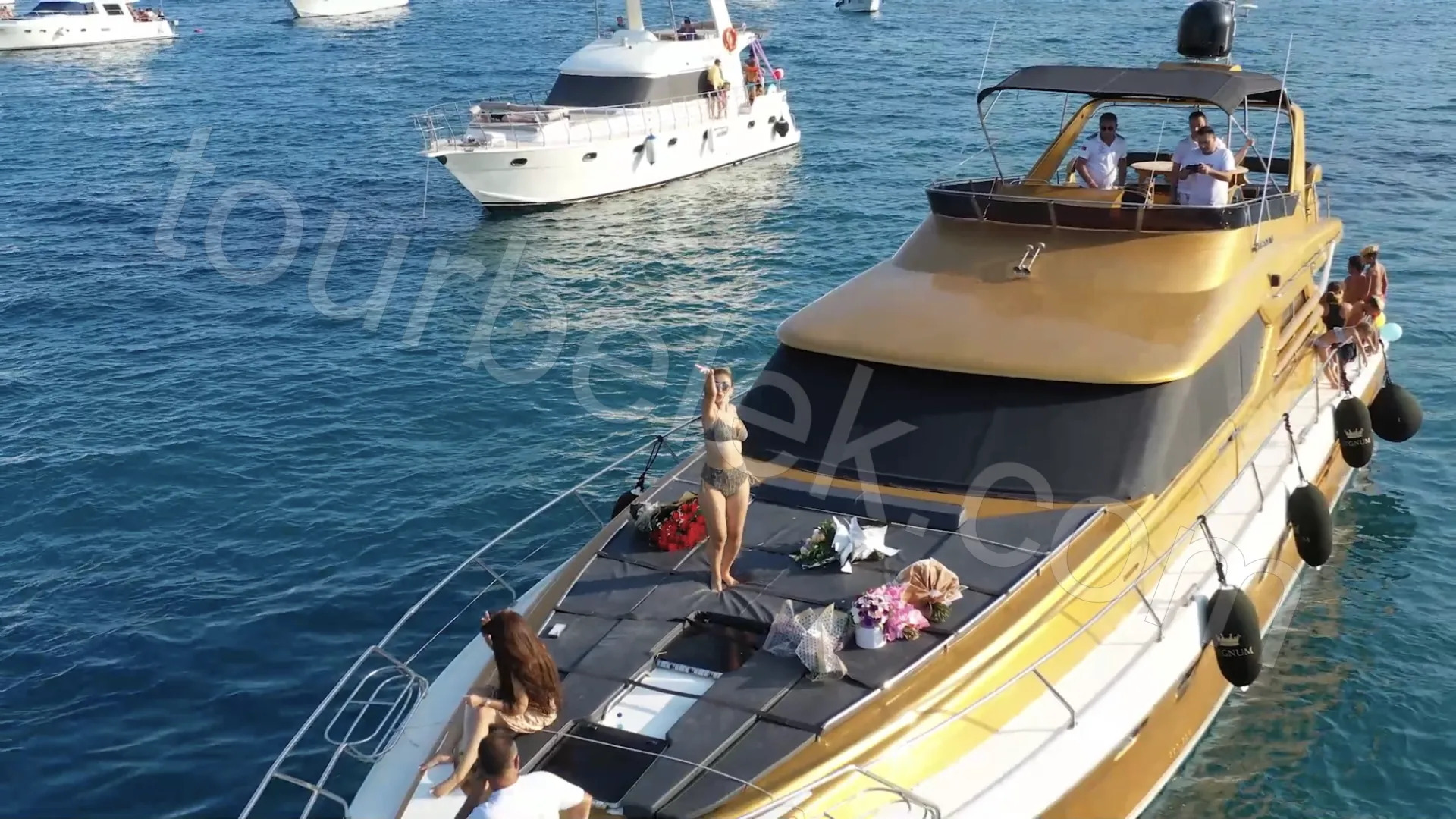 Soon after, it’s time to swim and unwind in the turquoise tones of Cleopatra Bay. Next, the yacht turns toward the pristine Porto Ceneviz Bay, reachable only by sea. Here, a natural mud-bath adds a unique touch—this little “spa” pause from nature is one of the tour’s most enjoyable details.