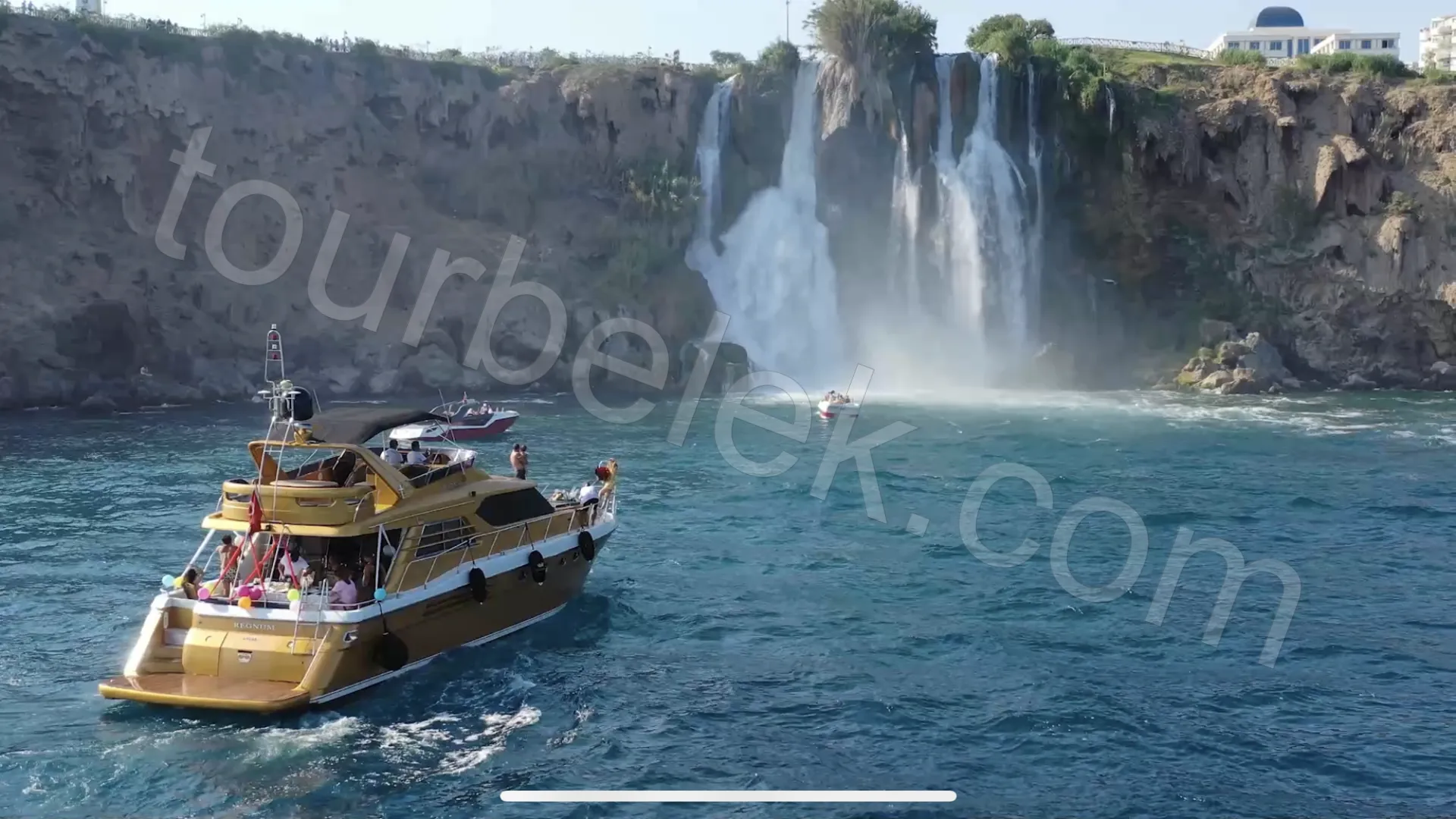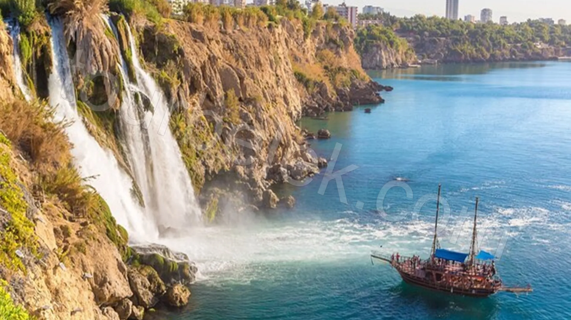 The journey then continues along the Lara coastline as the yacht heads toward Düden Waterfall. The most unforgettable moment comes when the yacht approaches the foot of the falls and cool spray splashes over guests. With this spectacular view, lunch is served right in front of the waterfall.