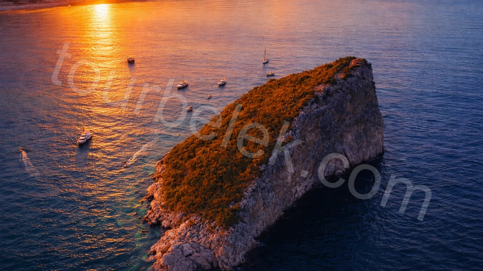 Departing from Antalya Marina, this sunset route brings together the Mediterranean’s calm bays for a relaxing evening on the sea. Your first cool-down stop is Rat Island, where a short swim break sets the tone for the cruise.