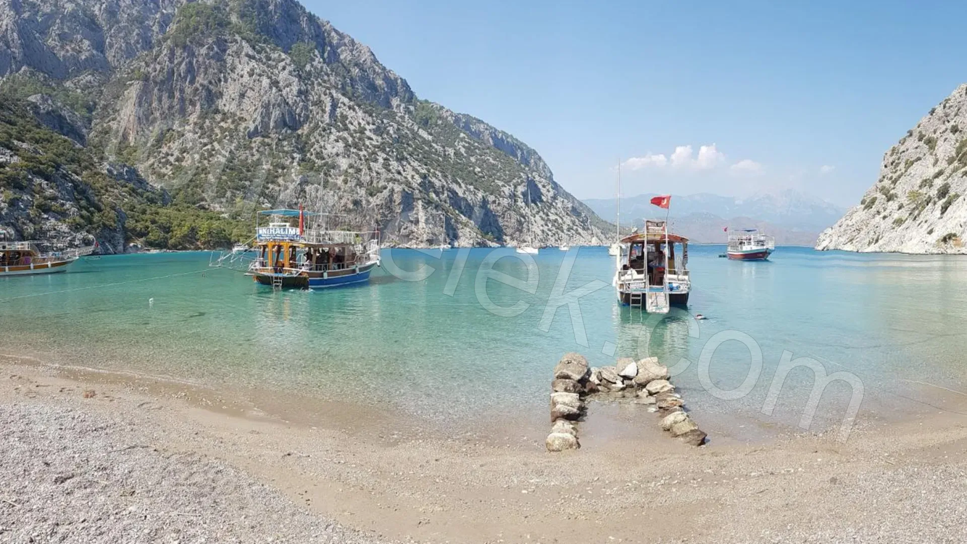 Next on the route is Phaselis Bay. It’s an ideal spot to view the ancient harbor remains from the shore and the water, cool off with a short swim, and feel the area’s historic atmosphere. Then comes Cleopatra Bay, known for its turquoise shades, with time set aside for swimming and relaxing.