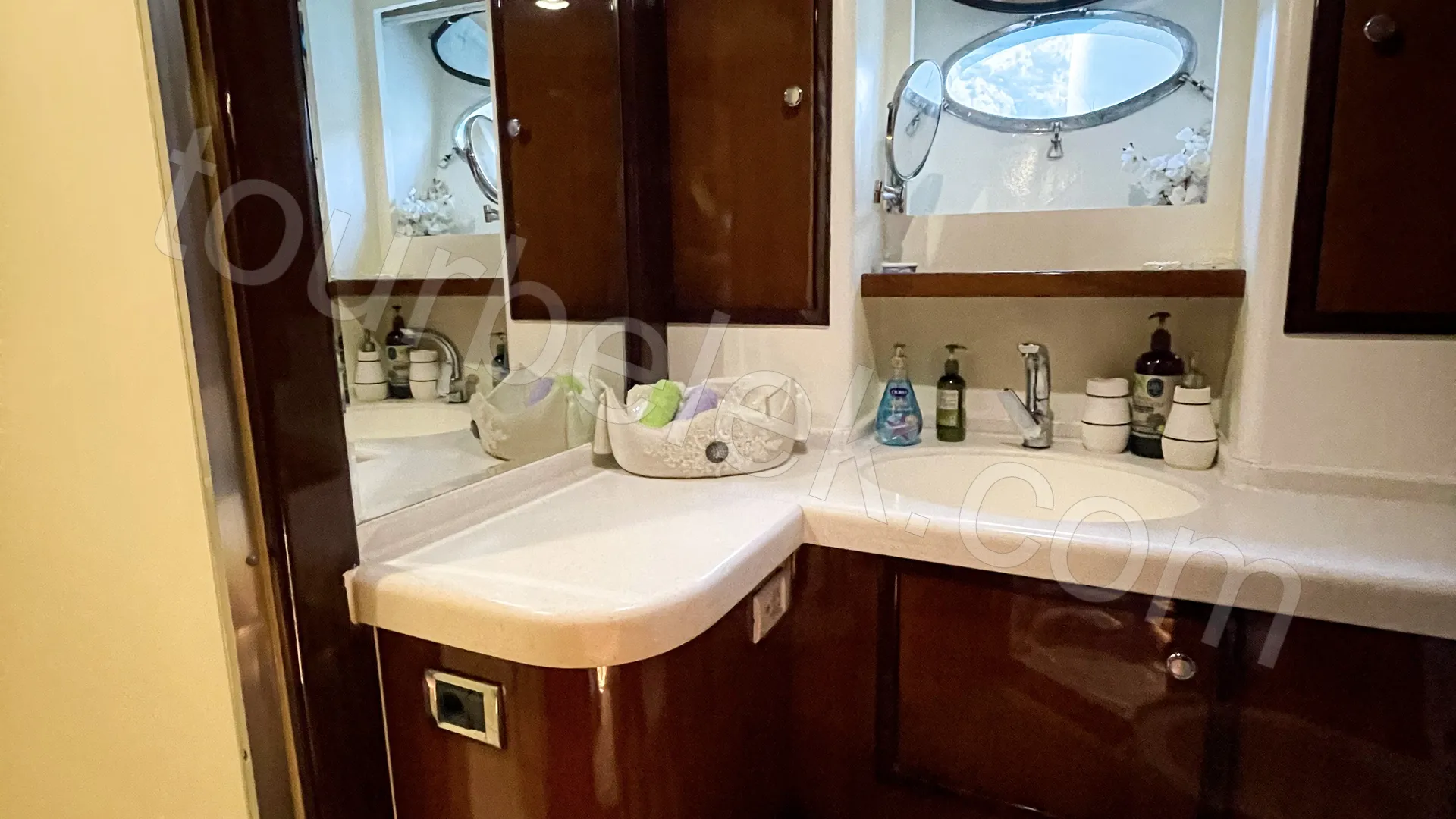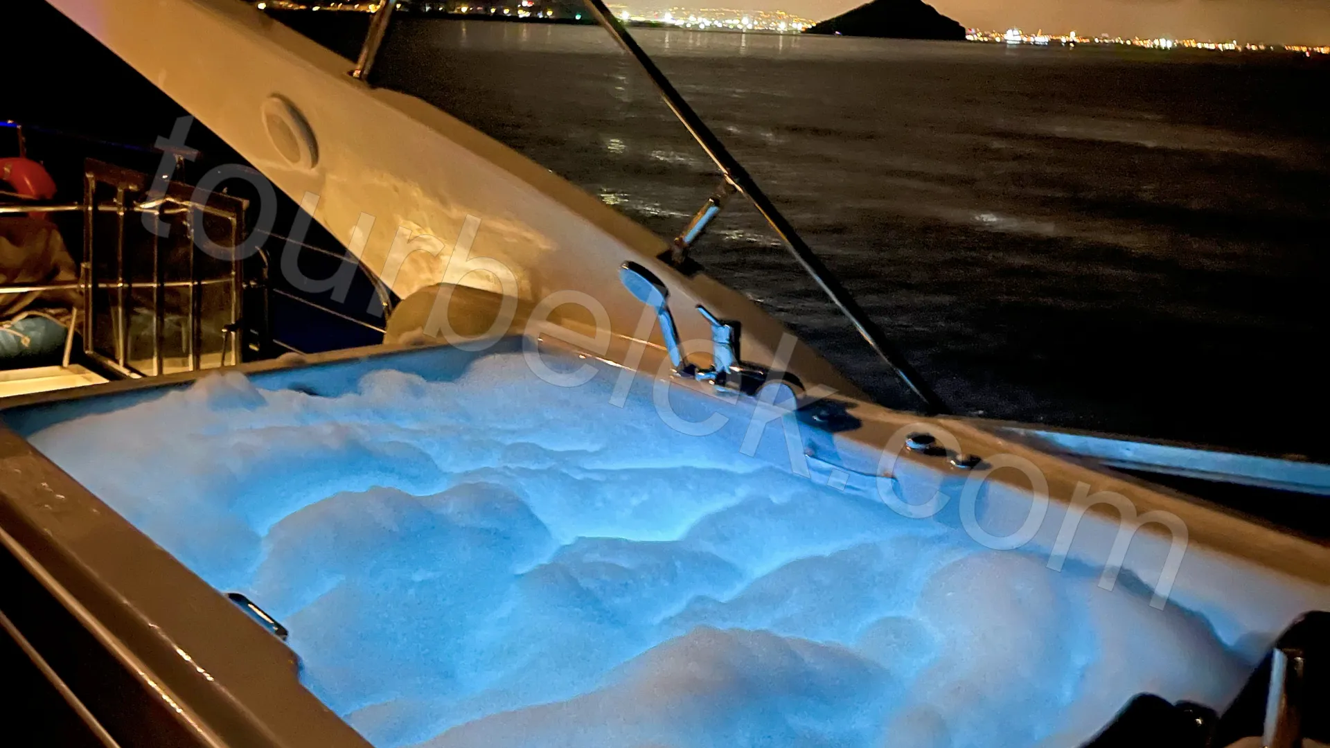 Soon after, it’s time to swim and unwind in the turquoise tones of Cleopatra Bay. Next, the yacht turns toward the pristine Porto Ceneviz Bay, reachable only by sea. Here, a natural mud-bath adds a unique touch—this little “spa” pause from nature is one of the tour’s most enjoyable details.