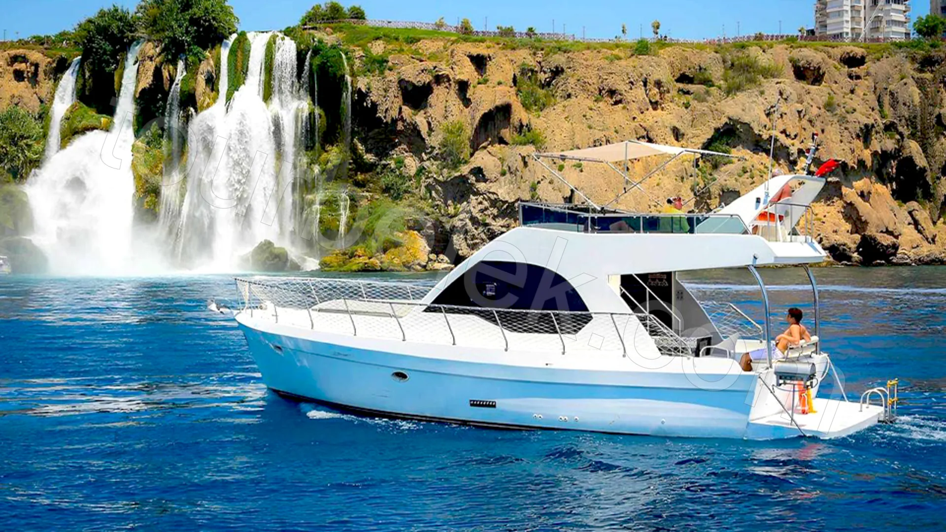 Departing from Belek, this full-day yacht cruise takes the Düden Waterfall line far beyond a “standard route”—with more time, richer stops, and more enjoyable breaks. After leaving Kundu and Altınkum beaches behind, you head toward the Fener, Kaplan, and Kuş Caves, with short, refreshing pauses around the Wish Stone and the Small Waterfall. The day’s peak moment begins as the yacht approaches the point where Düden meets the sea: moving closer beneath the falling water, you feel the cool mist on your face and experience the privilege of watching this scene from the sea.